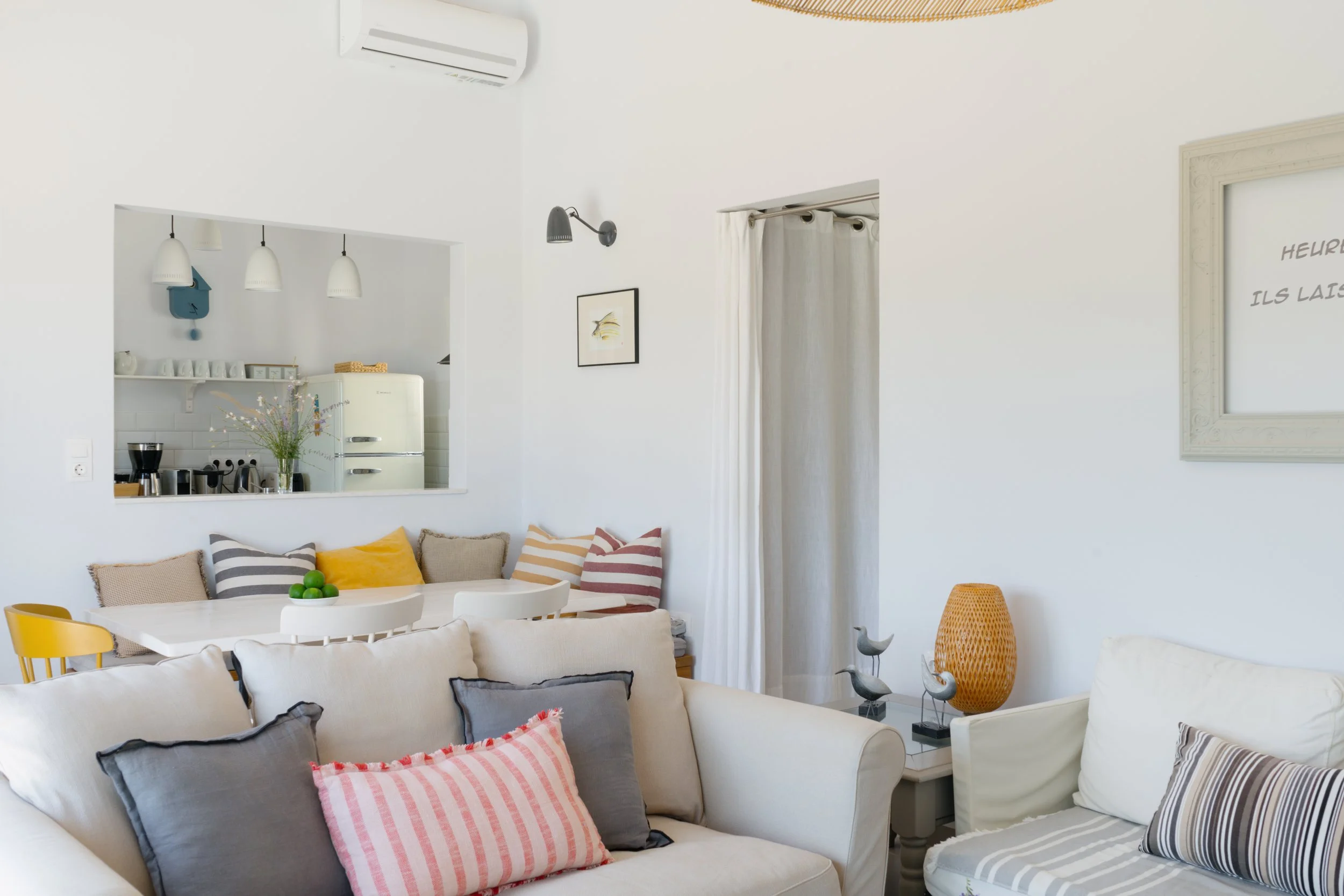 Composée de 3 chambres et de 3 salles de douche et WC privatives, la villa Citronnelle profite d’une situation exceptionnelle sur les hauteurs de Loggos. Chacune de ses 3 terrasses en restanques bénéficie d’une vue sur mer et sur la végétation généreuse de l’île.